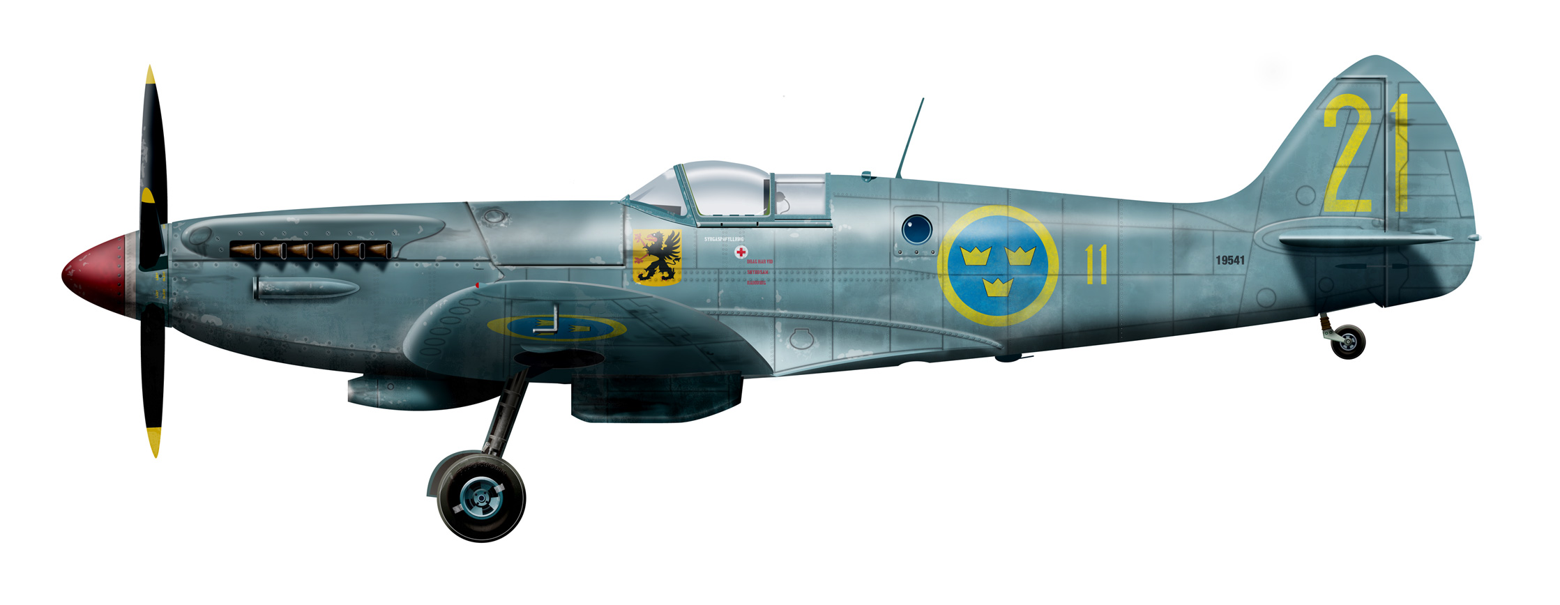 Spitfire Mk XIX(S-31) In1948 bought Sweden 50 copies of this aircraft from England for use as reconnaissance aircraft. It was later replaced by J-29 (the flying barrel).